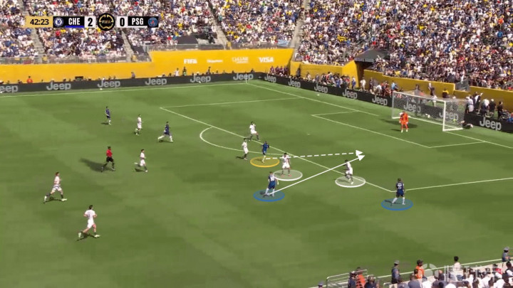 世俱杯决赛面对巴黎圣日耳曼,若昂-佩德罗展现出了极为高明的跑位。